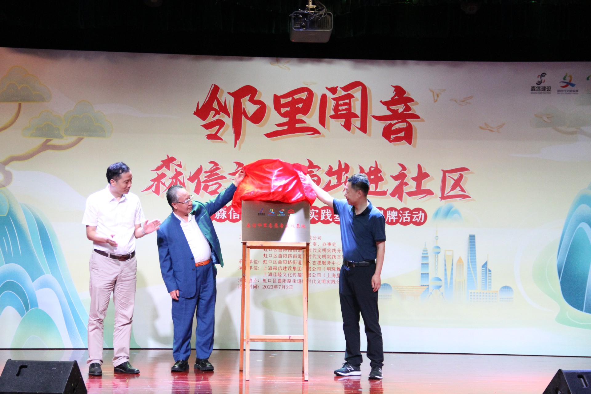 7月2日,“鄰里聞音”--森信文藝演出進(jìn)社區(qū)暨“森信鄰里志愿者實(shí)踐基地”揭牌儀式在曲陽(yáng)社區(qū)文化活動(dòng)中心一樓隆重舉行。
