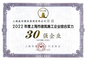 森信集團(tuán)再次榮登“上海施工企業(yè)綜合實力30強(qiáng)”